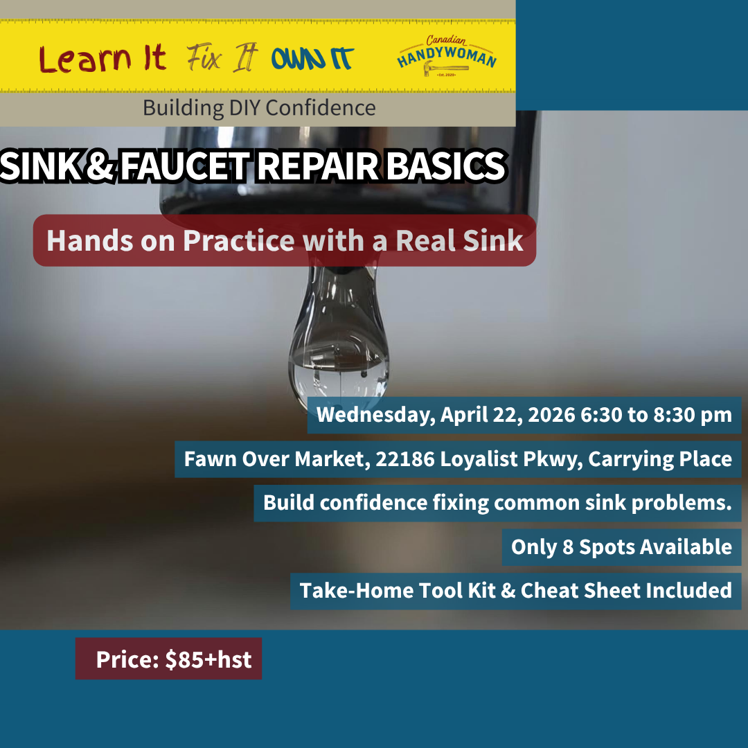 Fix those pesky wall dents and nail holes once and for all. Join Canadian Handywoman for a fun, supportive evening where you’ll learn real patch and paint techniques you can use again and again.